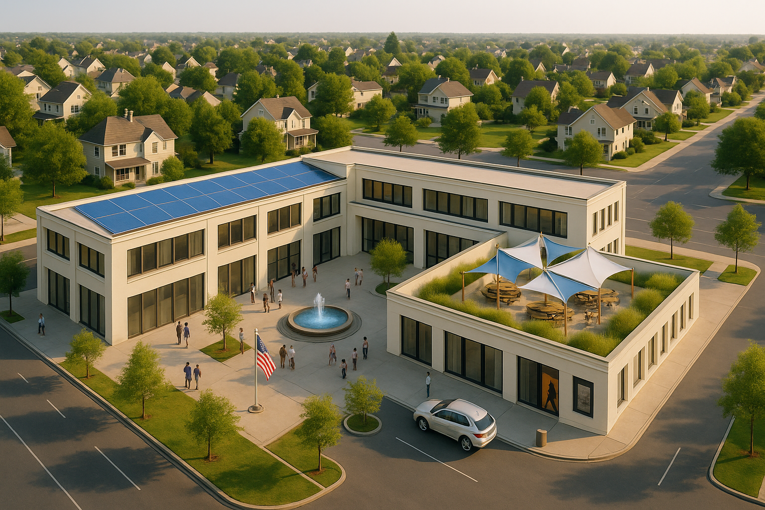 Aerial view renderings provide clients, stakeholders, and decision-makers with a comprehensive