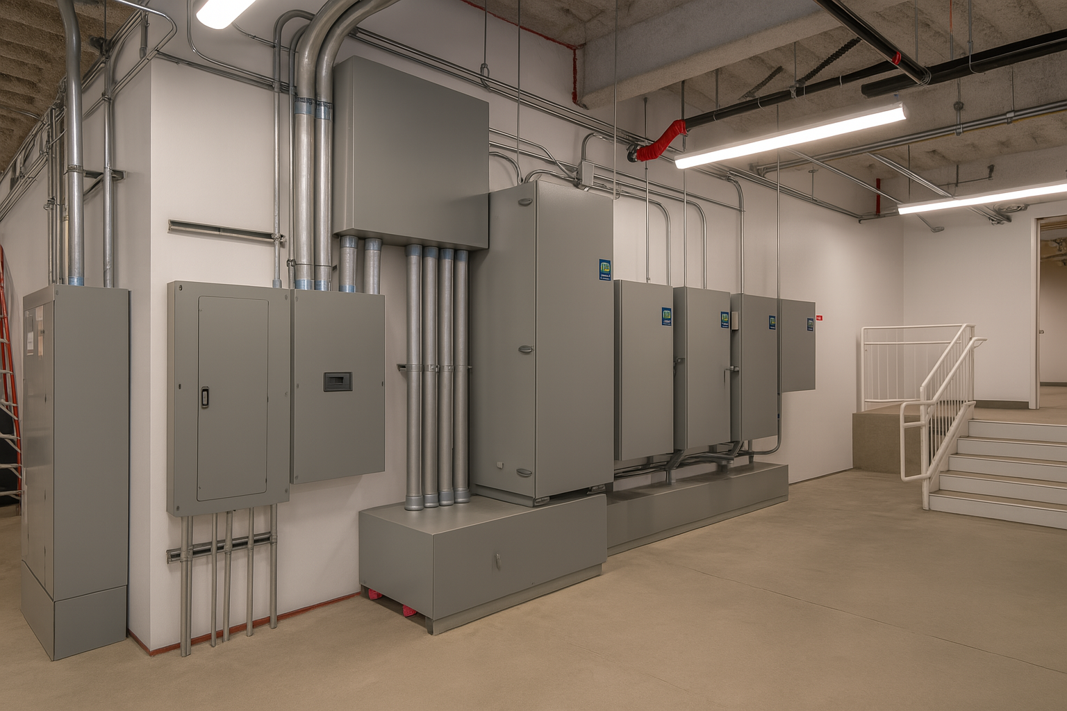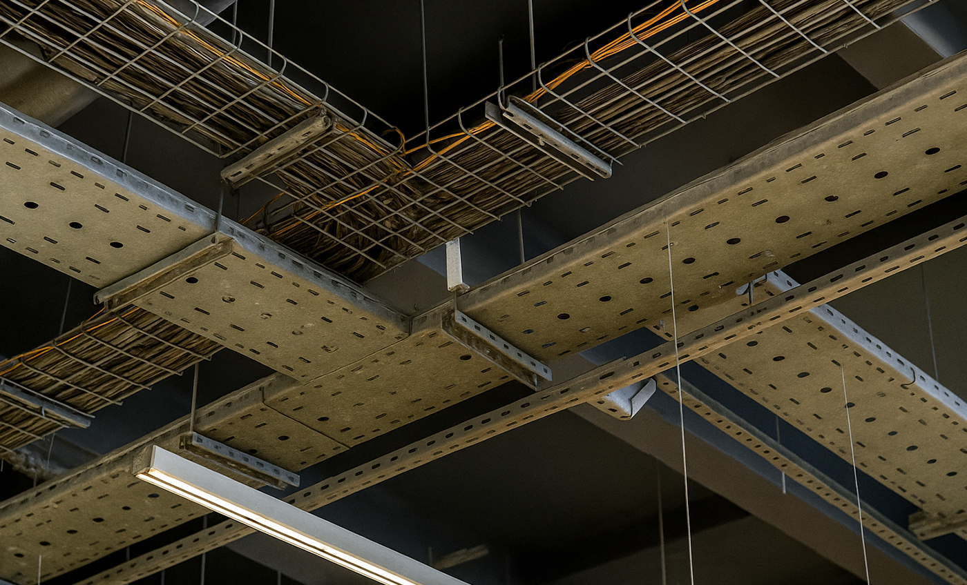 including cable trays, wiring, lighting, panel boards, conduits,
