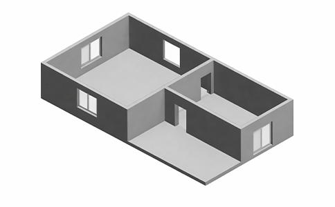 Includes: Simplified building massing generated from scans, showing overall form, floor plates, heights, and primary spatial volumes without detailed elements.